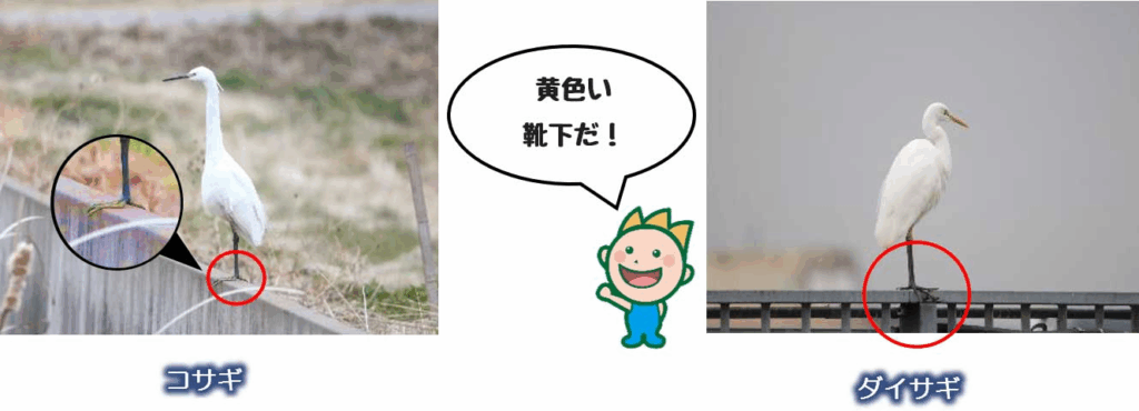 ダイサギやチュウサギと似た姿をしていますが、足が黄色いため見分けることができます。