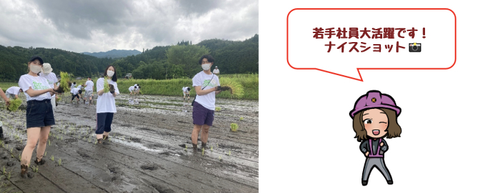土を知ることで土木を肌で感じてもらうことを目的として春に田植え、秋に稲刈りを行っている研修です♪
