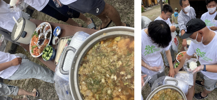 炊き立てご飯で作るオリジナルおにぎりと栄養満点の味噌汁をいただきました!