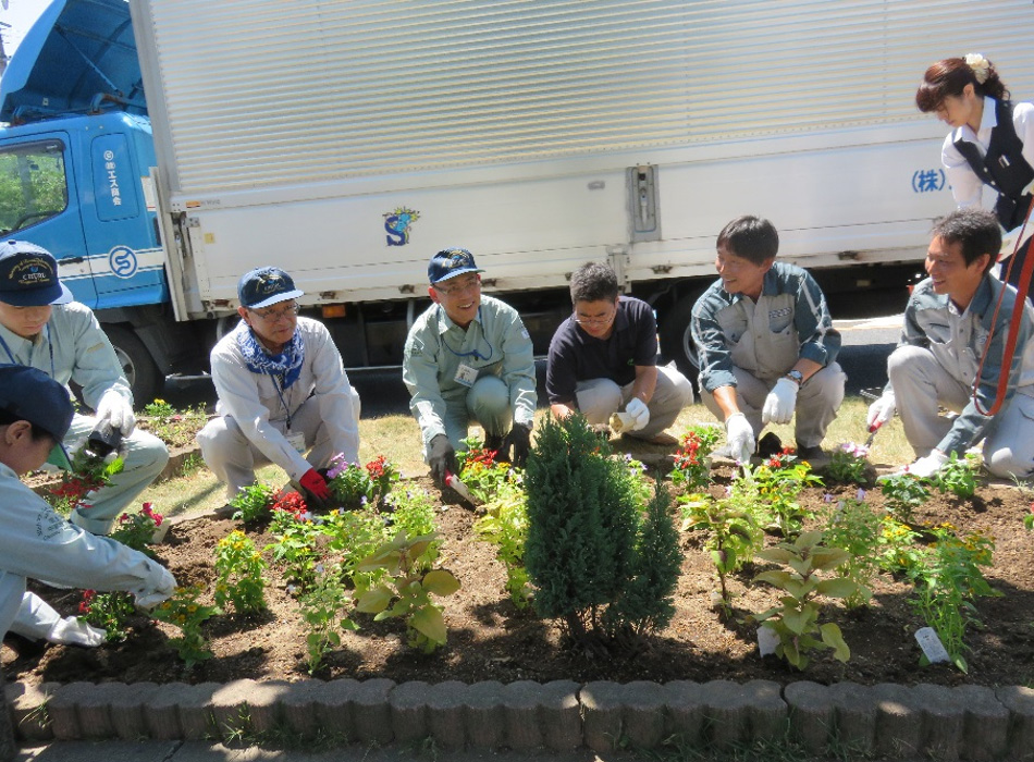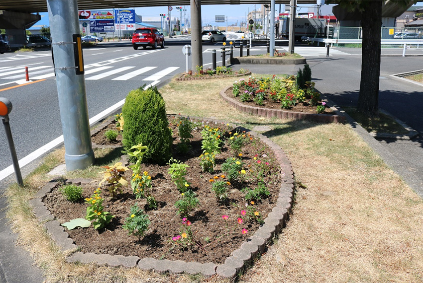 実は、2009年から本社前の国道一号線の緑地帯をお借りして花壇を整備していたのです。
