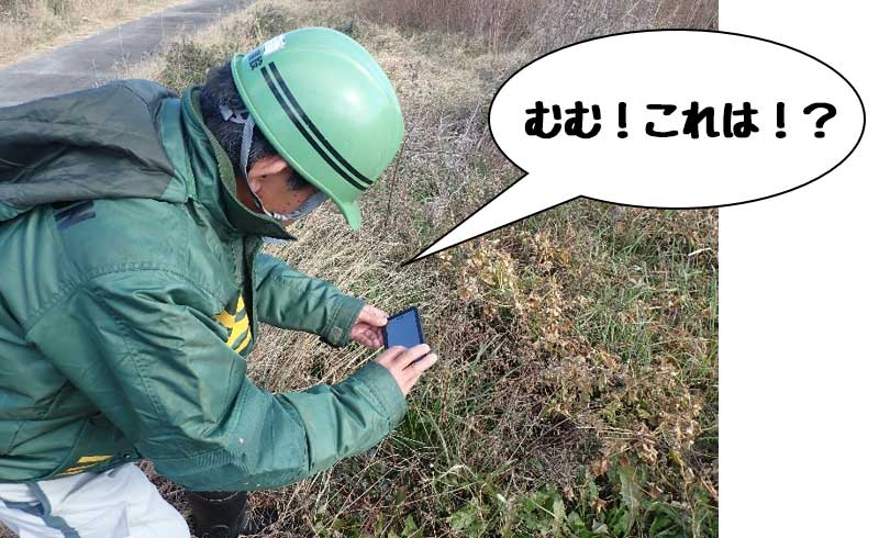 現場の職員全員が、コイヌガラシが生えていることが分かるようにロープでぐるっと囲いました。