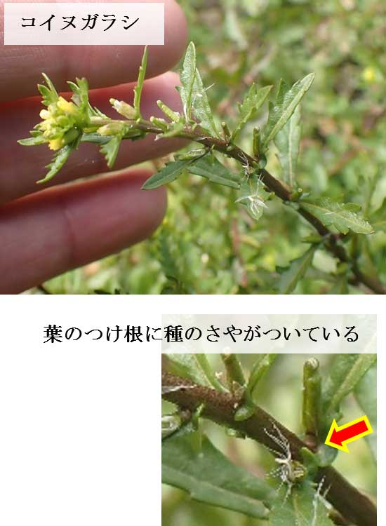 コイヌガラシはアブラナ科の植物で、さやの中に小さな種子をたくさん蓄えています。
