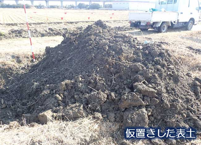 一か所にまとめて仮置きし、工事が完了後に造成エリアの水が集まりそうな場所に使用する予定です。