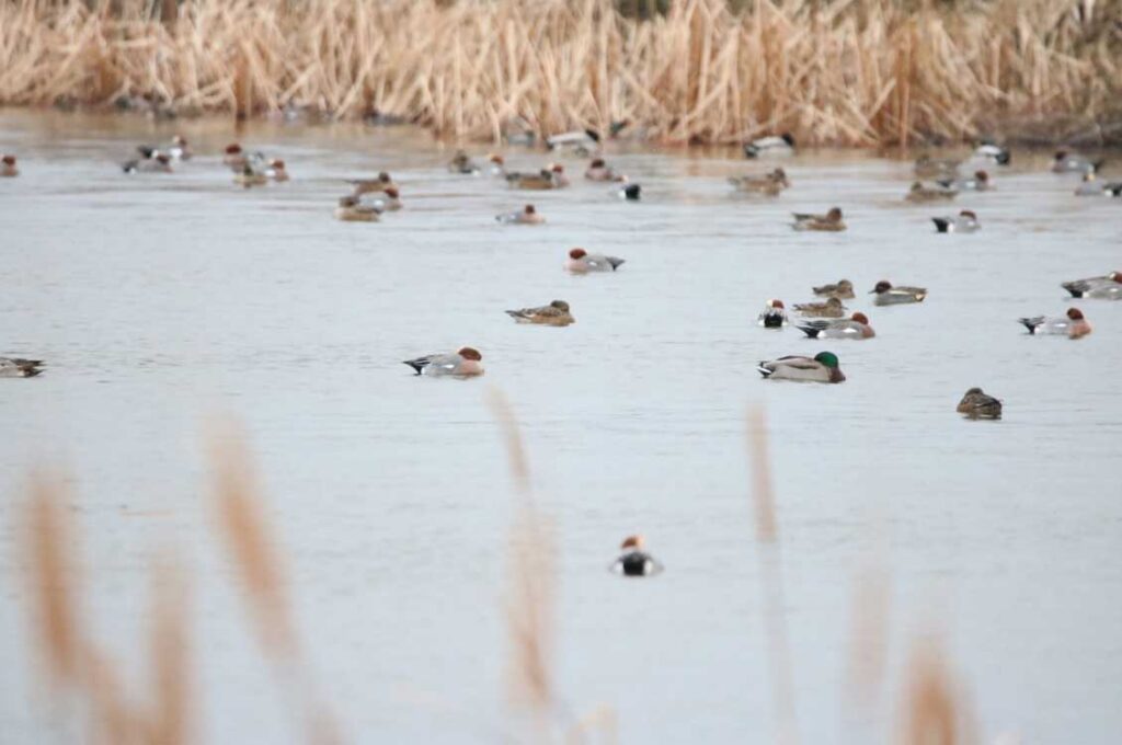 マガモ、カルガモ、ヒドリガモ、コガモ、ハシビロガモ・・・多種多様なカモたちが楽しそうに水浴びをしています。
