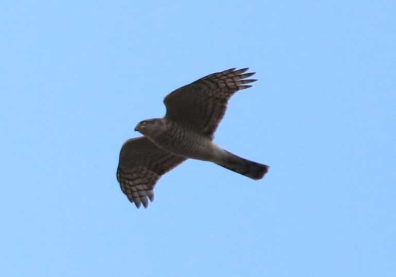 トビやミサゴのさらに上空でハイタカが飛んでいました!翼の内側の縞模様が特徴的です。