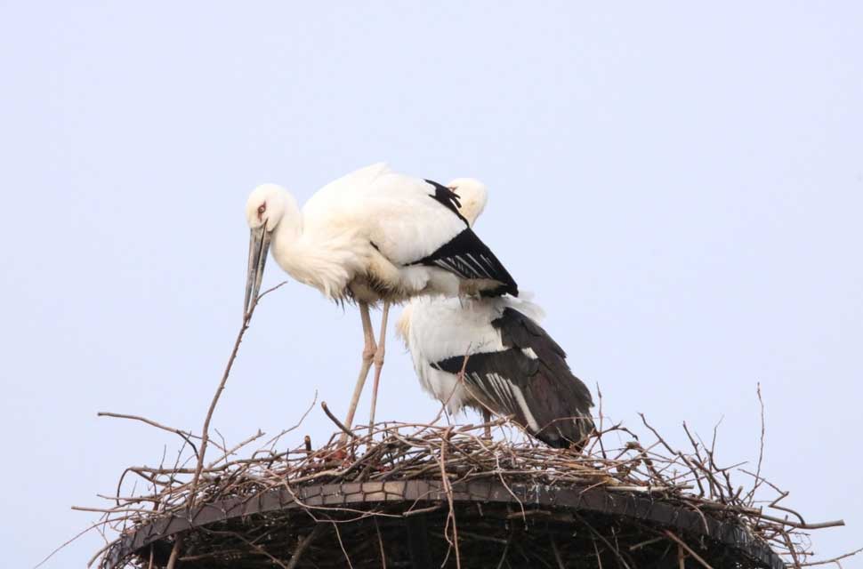 よく見ると、2羽のコウノトリが巣作りをしています!!