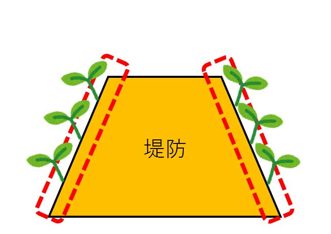堤防の内側と外側 両方にまきます!