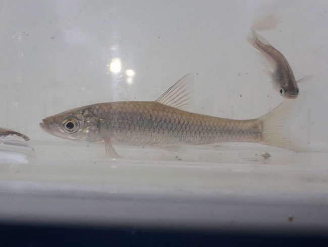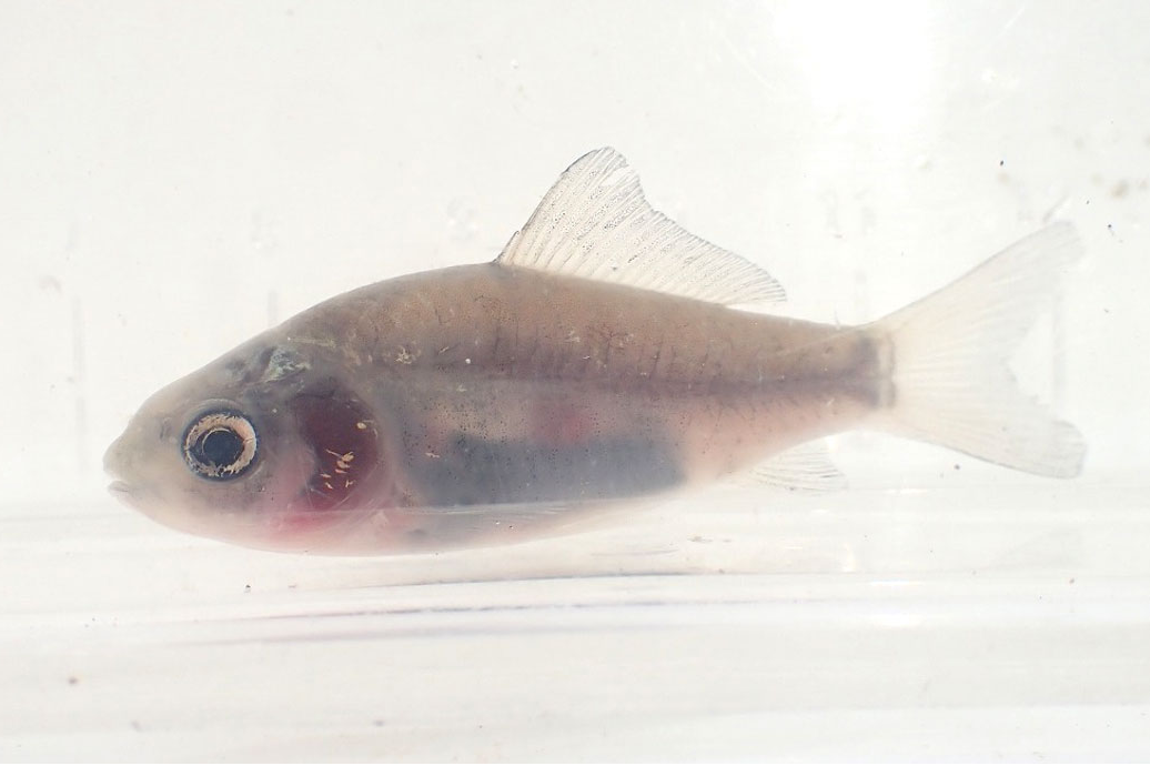 これは“透明鱗”と呼ばれる ウロコに色素をもたない突然変異の個体です。