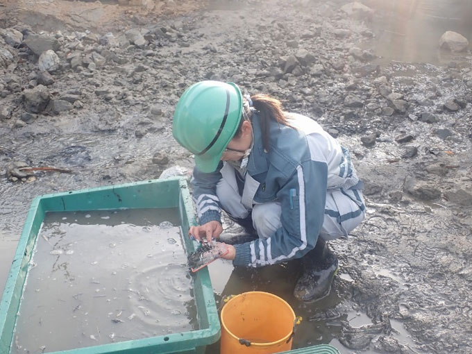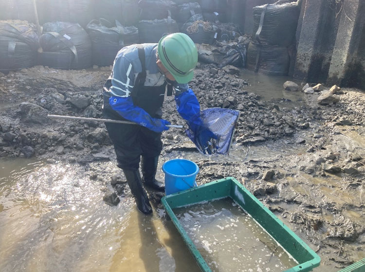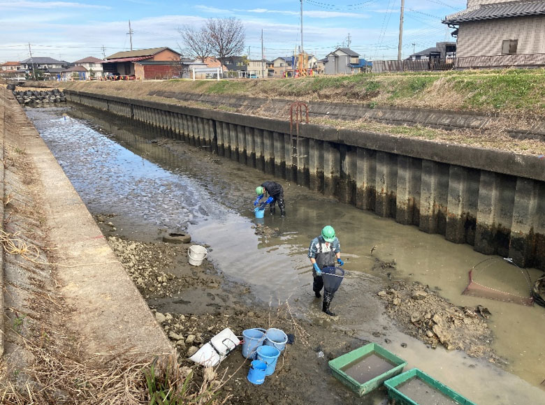 捕獲した生き物を同河川の下流へ放流。