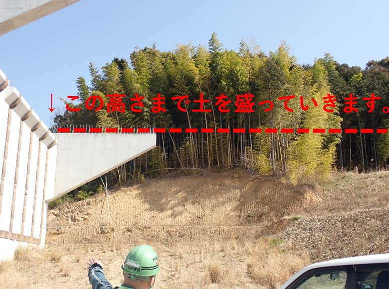 完成している構造物の高さにあわせて土を盛り、道路をつなげていきます。