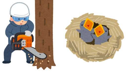 ・野鳥の営巣や希少種がないか、調査してから伐採する