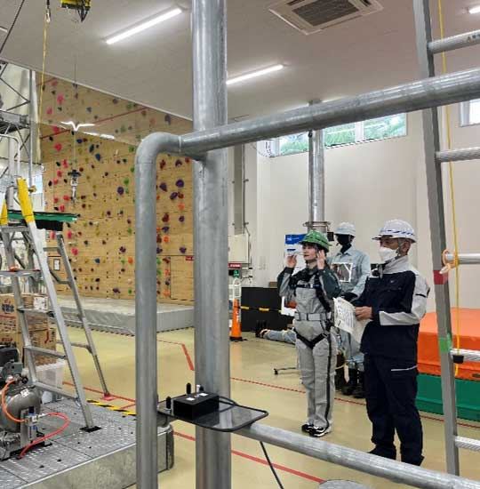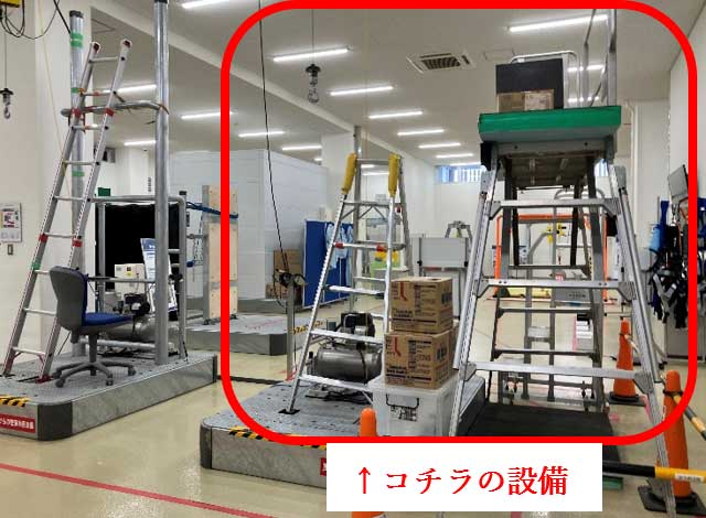 最初に体験してもらうのは…『脚立転落体感設備』!!