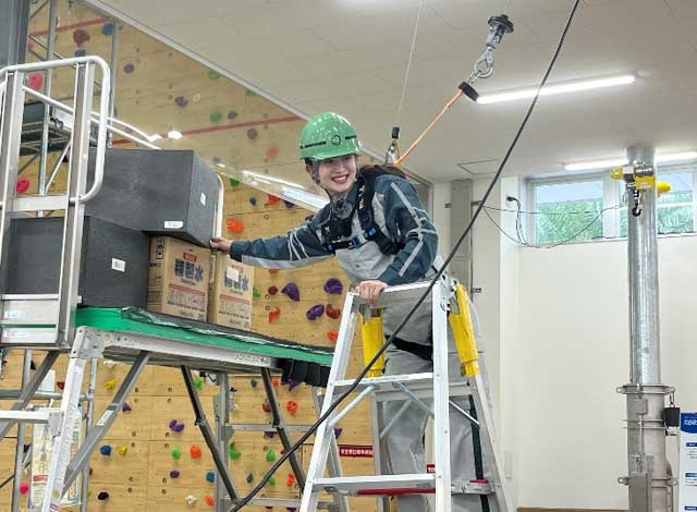 里奈さんには夏バージョンのユニフォームに着替えてもらいました!(シャツ、夏ズボン、ヘルメットを着用)
