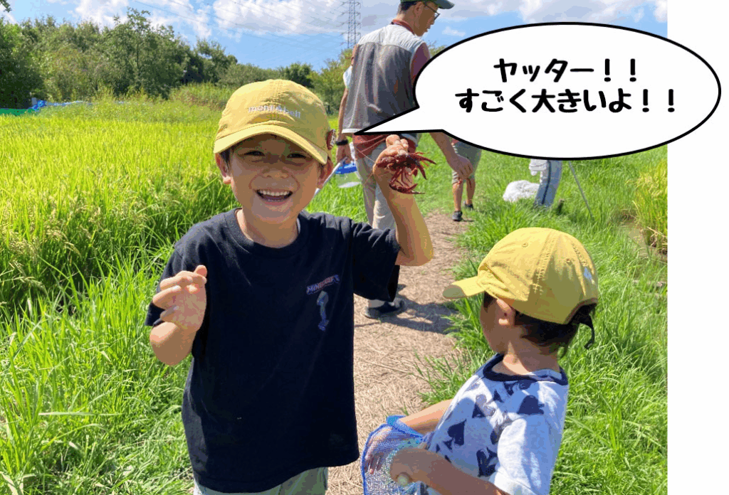 田んぼの近くでは真っ赤なアメリカザリガニをゲット!!