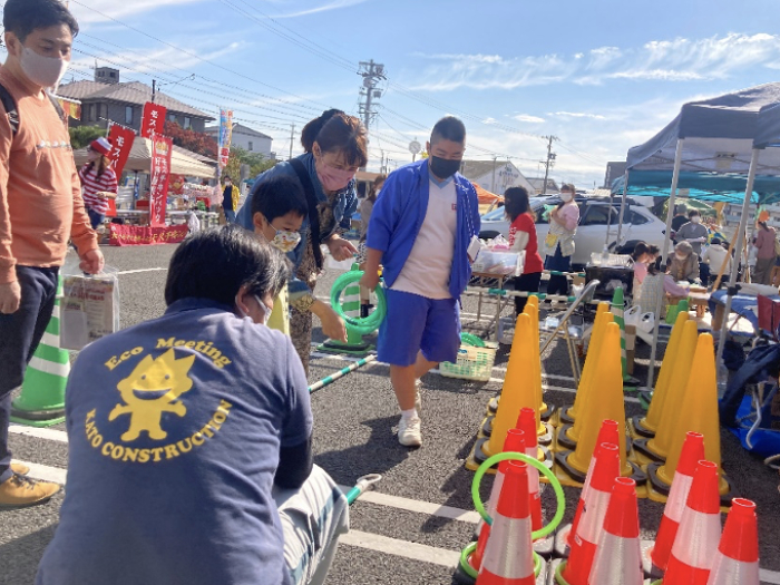 加藤建設のブースでは毎度おなじみの「カラーコーン輪投げ」を実施°˖✧