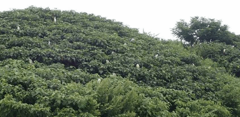 蟹江ICの林には人が立ち入らないため、サギがたくさんの巣を作り、サギコロニーになっているんだとか。(コロニー:地域に定着した生物の集団)