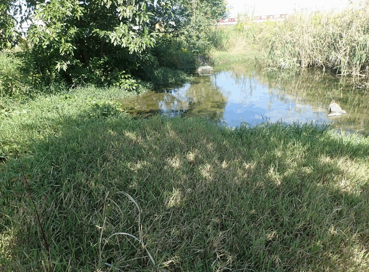 ビオトープの水は隣の川からポンプで汲み上げているため、小さな魚や卵を除き、魚が入ってくることはありません!
