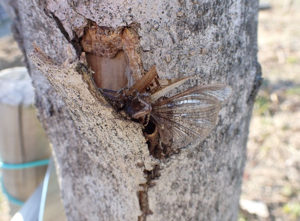 そして、枝ではなく樹皮の間に差し込まれたタイプ。