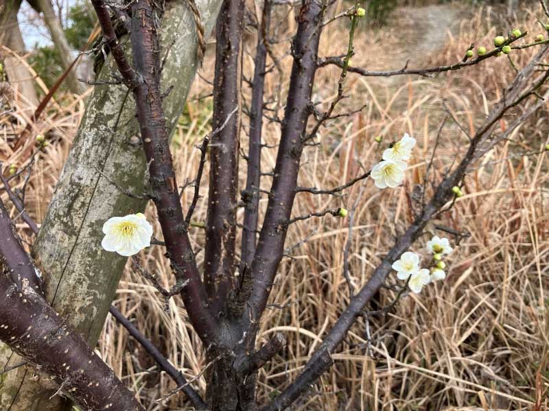 カトケンビオトープの生き物たちはというと・・・森林エリアの入り口にあるウメが花を咲かせました!