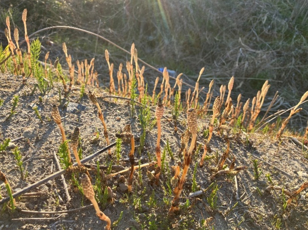 見てください!法面にツクシがたくさん生えていますよ!皆さんは、ツクシ食べたことありますか?