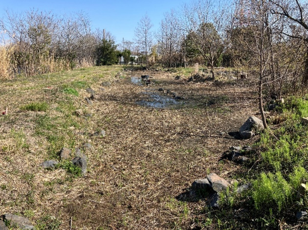 さて、そんな水辺エリアですが、昨年の秋あたりから浅い方の池の水を抜いていました。