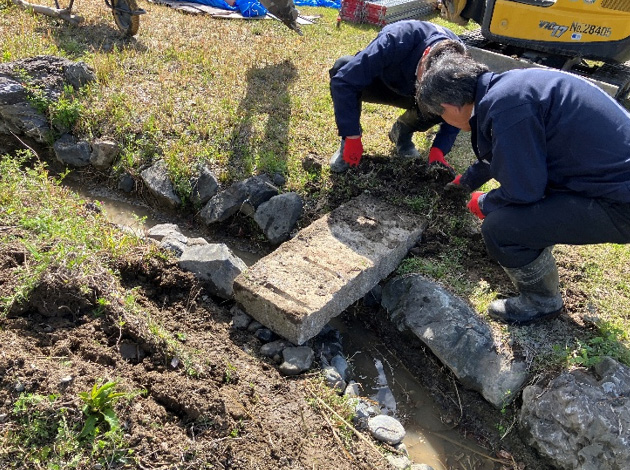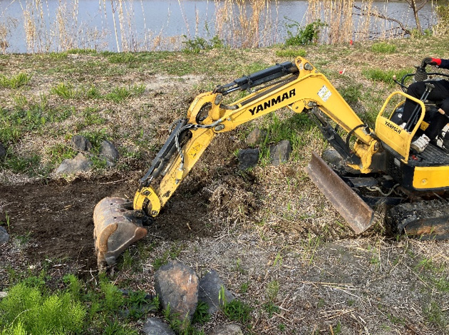 さて、バックホウが頑張ってくれている間に、他にもメンテナンスが必要な箇所がいくつかあるので、人の手で直していきたいと思います。