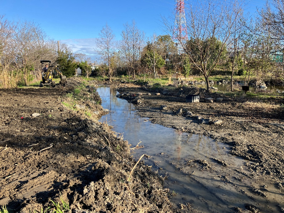 そうこうしていると、池の浚渫が完了しましたよ!泥がなくなり、水深が確保されていい感じになりました。
