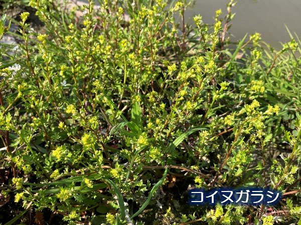 工事現場から移植したコイヌガラシも、小さな黄色い花を多数咲かせて元気いっぱいです!!