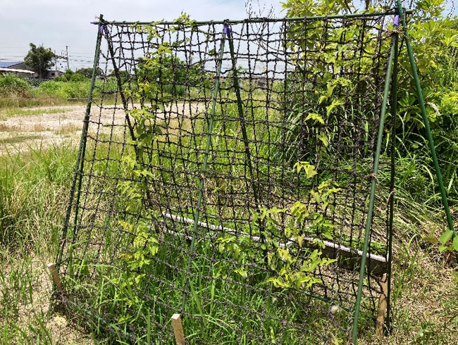 さて、草地エリアではネットに勢いよく絡んでいる植物がありますね。