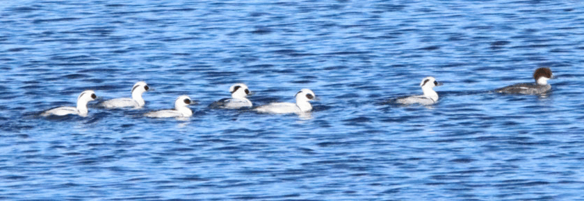 あっと、逆光でシルエットになってしまいましたが、それでも分かるほどの“大きく幅広いくちばし”をもつのはハシビロガモ。