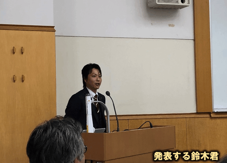 と題しまして、弊社の鈴木君が企業の事例として発表いたしました。