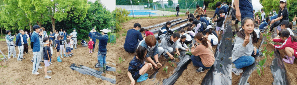 植え方の説明を聞いてから、みんなでさっそく植え付けます。
