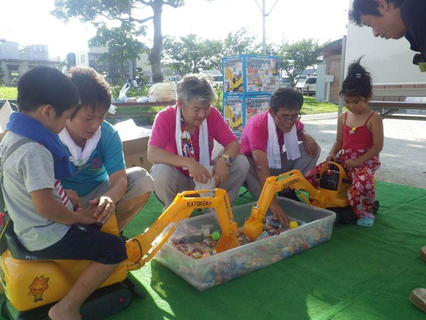 溢れかえる子供たちのためにお祭り男たちも必死です。