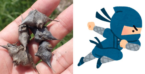 ヒシは浮葉植物ですが実はとっても尖がっていて痛いのです。