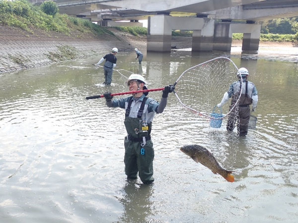 その後も大きなヘラブナなど次から次へと捕獲されました。判別班&放流班大忙しです!!