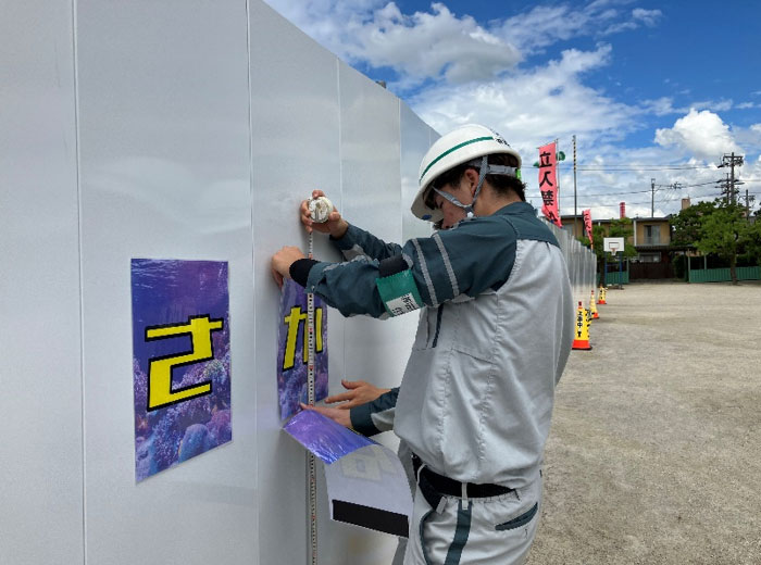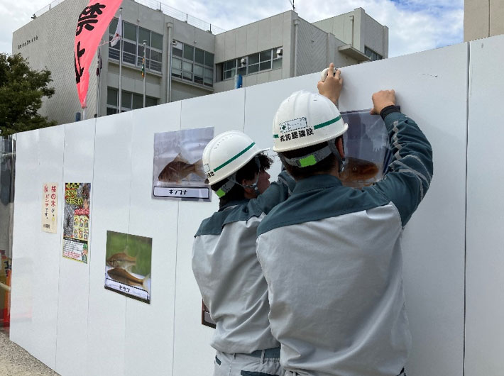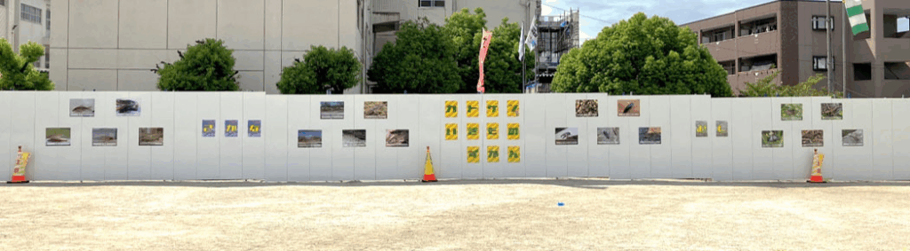 実際の様子がこちら。校庭に面した仮囲いパネル。