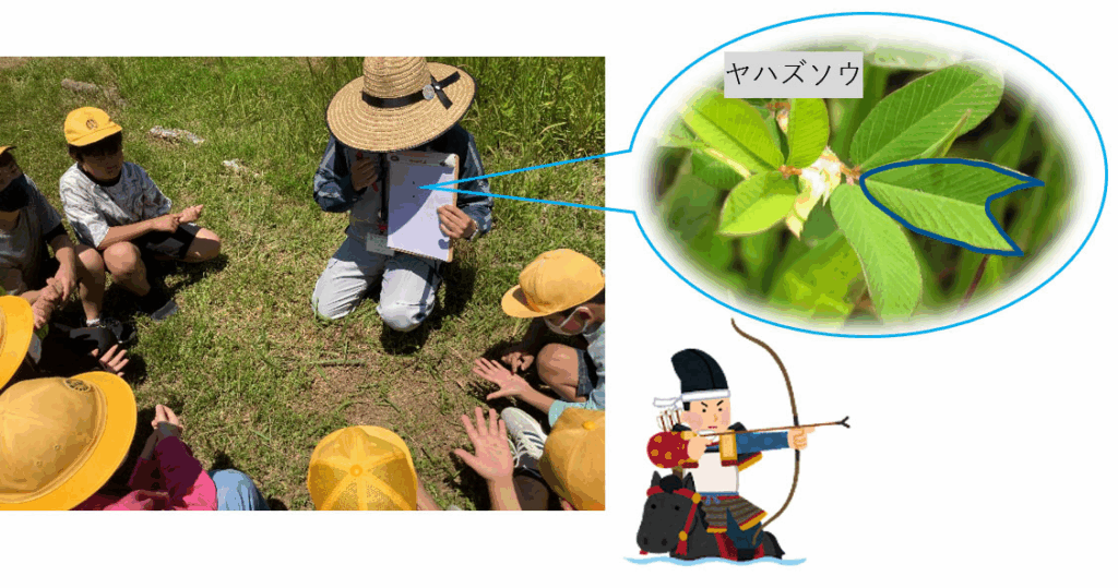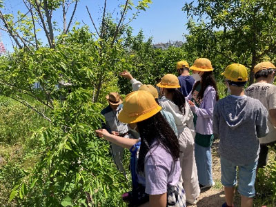 森ゾーンでは、植物の紹介や五感を使った観察を行いました。