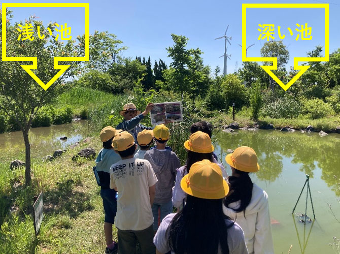 続いて行ったのは、深い池と浅い池の比較です!