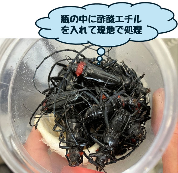 なんとこんなにもクビアカツヤカミキリを防除することに成功しました!!