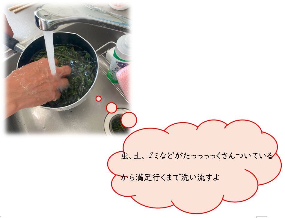 ① スベリヒユをよく洗う