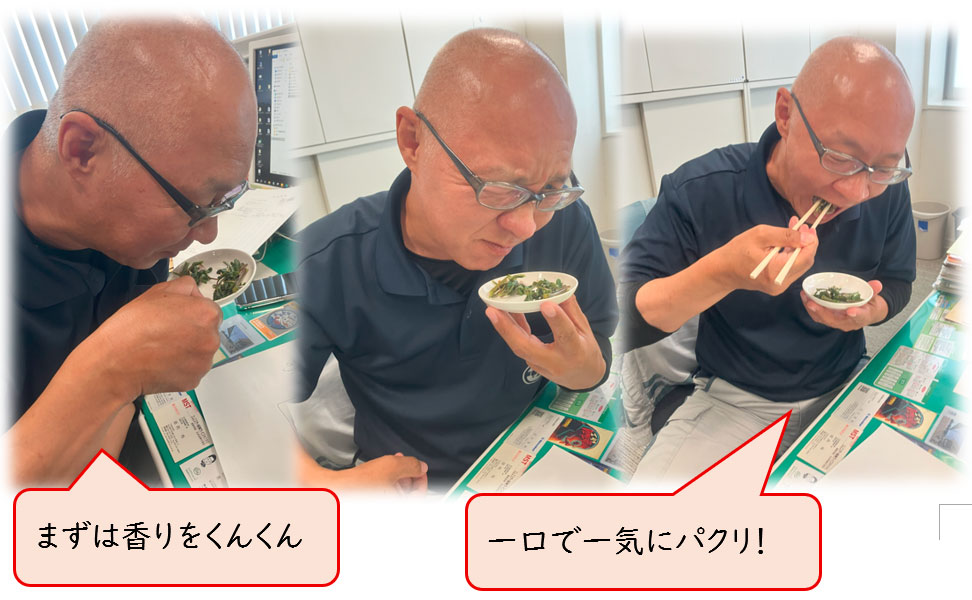 味の感想ですが、噛めば噛むほど口の中でシャキッとぬるッが綱引きをしているような感じでした。青臭さもなく食べやすい野草です!