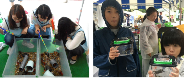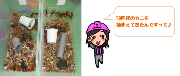 当社は現場で保護したゾッとするような生き物の展示や輪投げゲーム、それからカニ釣りを実施!!