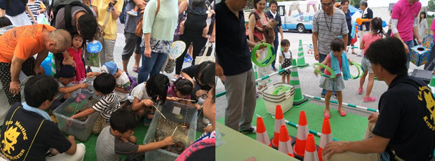 もちろん、毎年恒例のカニ釣りや、展示してある生き物にちなんだクイズ&輪投げゲームも用意しましたよ。