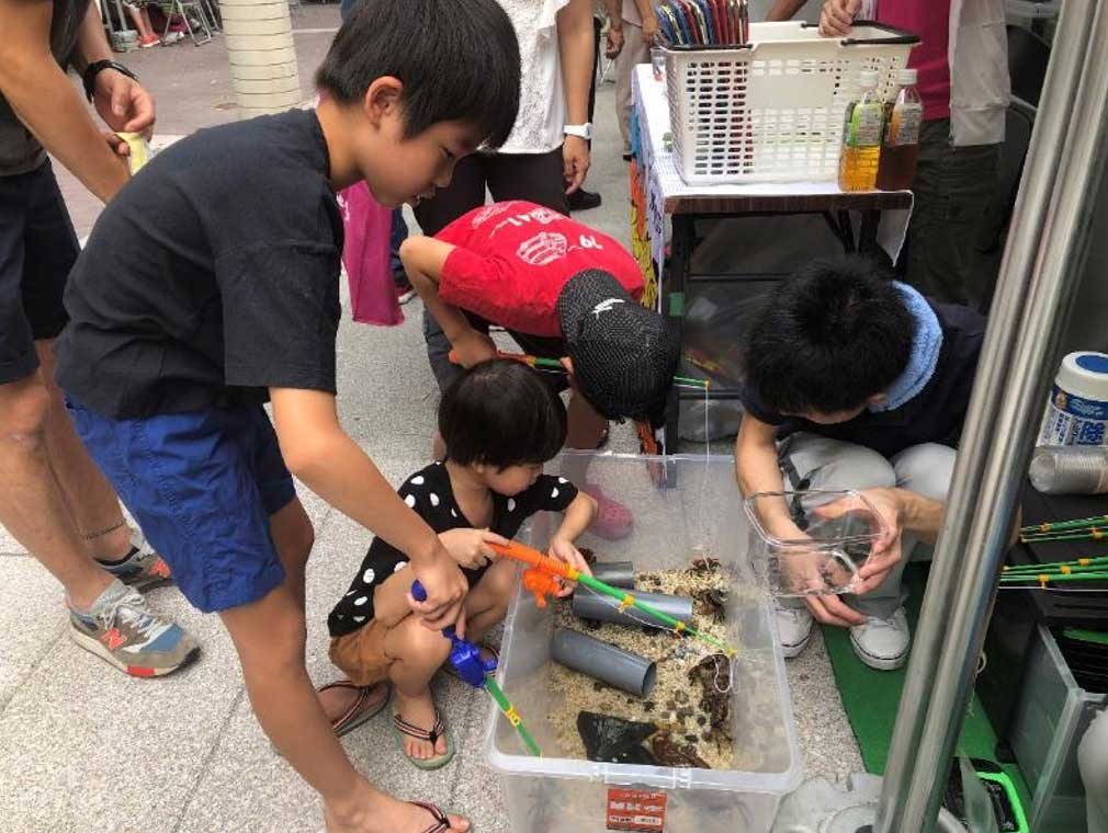 生き物に触れ合いながら問題に答え、いよいよ最終問題「いきものさがし」