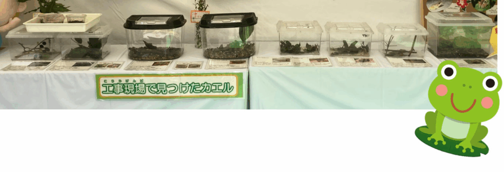 生き物展示の中心となったのは…現場で保護したカエルたち♪