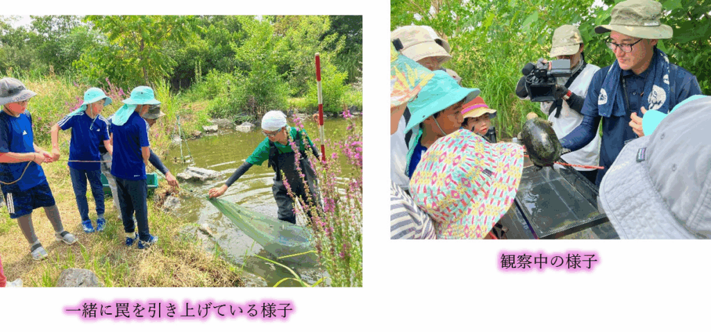 当日は子供たちと一緒に罠を引き上げ、カメや魚、えびなどをたくさん捕まえることに成功し、子供も大人も大喜び!