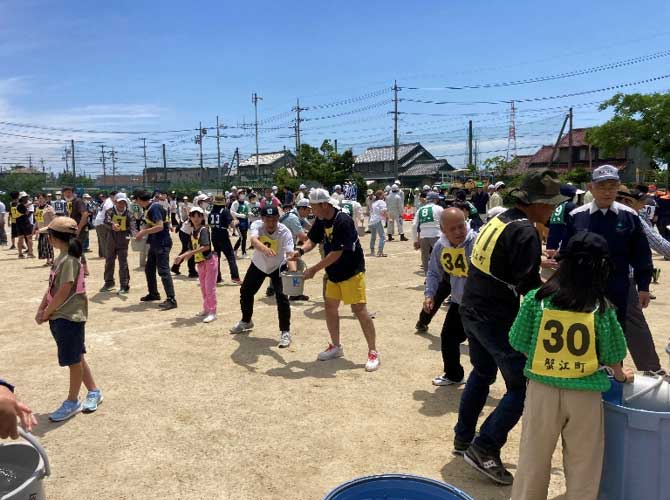 6/4(日)に新蟹江小学校区の7つの町内会などが主催し、弊社を含めた5つの地元建設会社が協賛している「第10回新蟹江学区防災運動会」が開催されました!