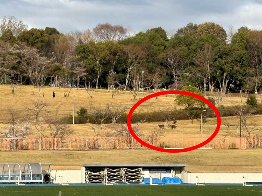 余談ですが、後輩の400mハードルのレースを見ていると、 競技場の裏山では、鹿が仲良く追いかけっこしていました!!