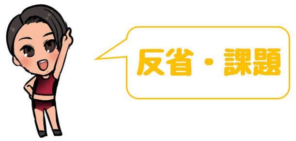 踏み切るときに前に踏み切ることができずスピードが落ちてしまっていたので、次回はその部分を修正し、前回の反省点でもある後半部分につなげていきたいです!