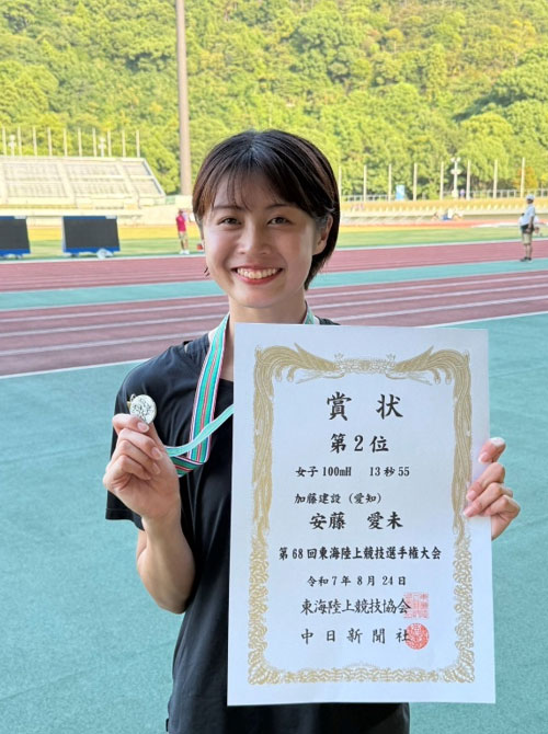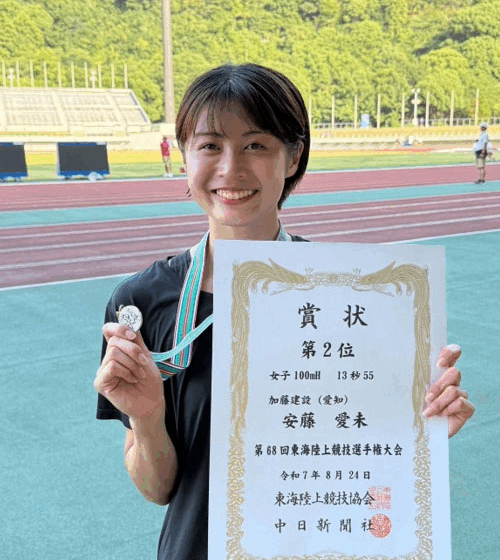 愛知県大会に引き続き2位でしたが、来年は12秒台で大松選手に勝てるように頑張ります!